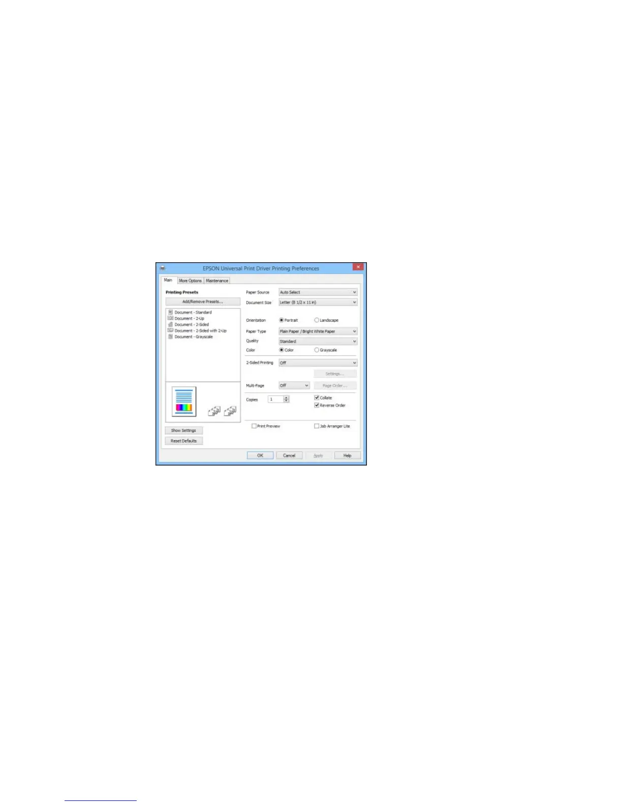 Note: You may also need to select Properties or Preferences to view your print settings.