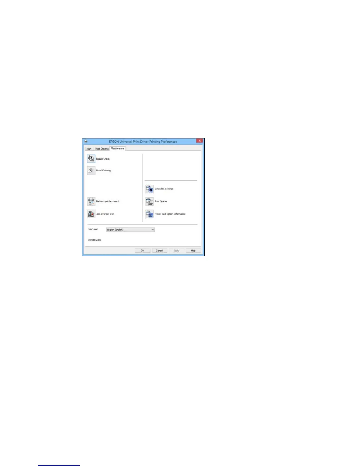 Selecting Maintenance Options - Epson Universal Print Driver - Windows