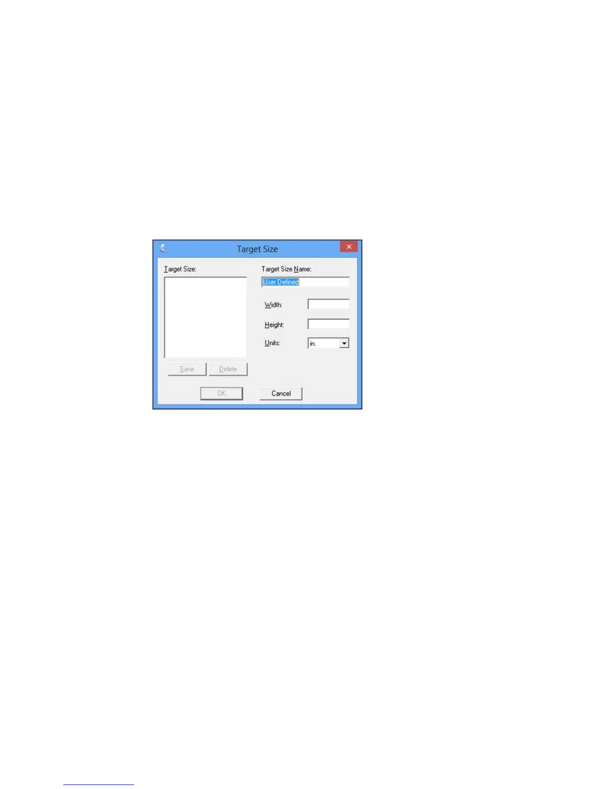 4. To create a scanned image size that is not available in the Target Size list, click the Customize
