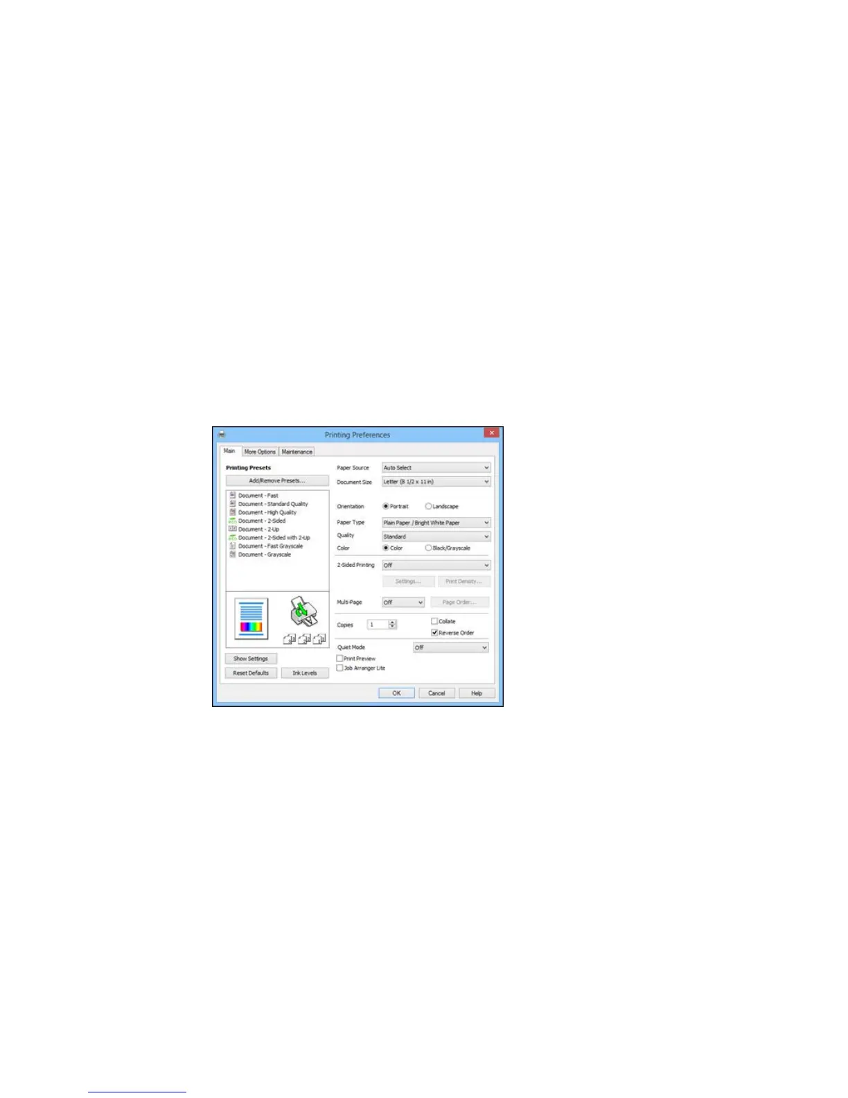 Note: You may also need to select Properties or Preferences to view your print settings.