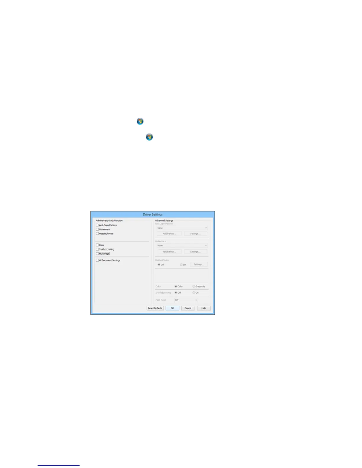 • Windows Vista: Click and select Control Panel. Click Printer under Hardware and Sound,
