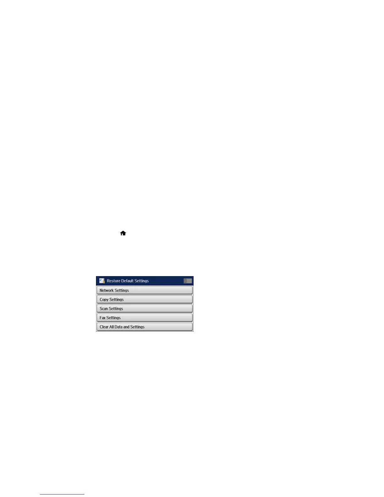 • Network Settings: Resets all network settings.