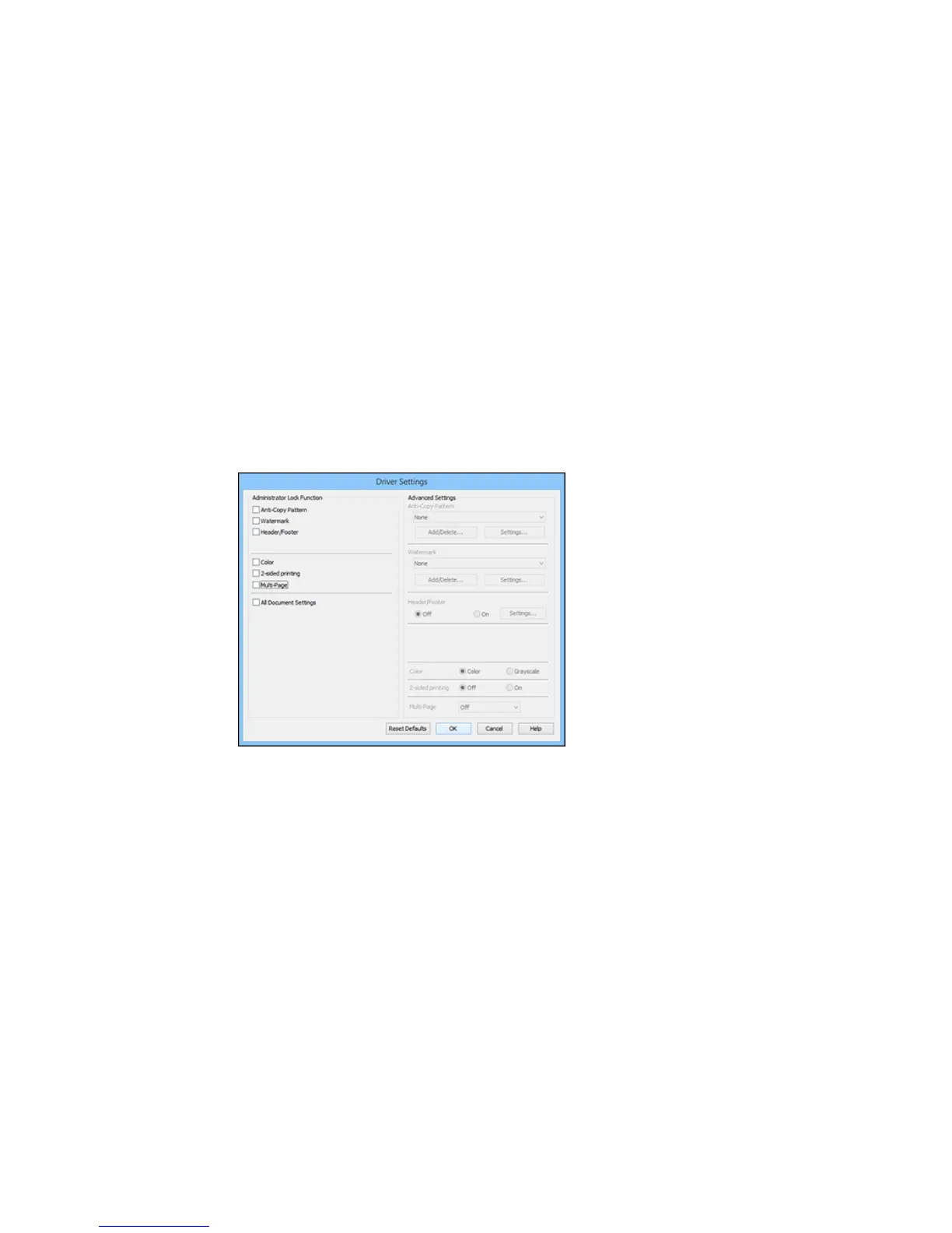 4. Select the checkbox for the settings you want to lock. To lock all print settings, select All Document