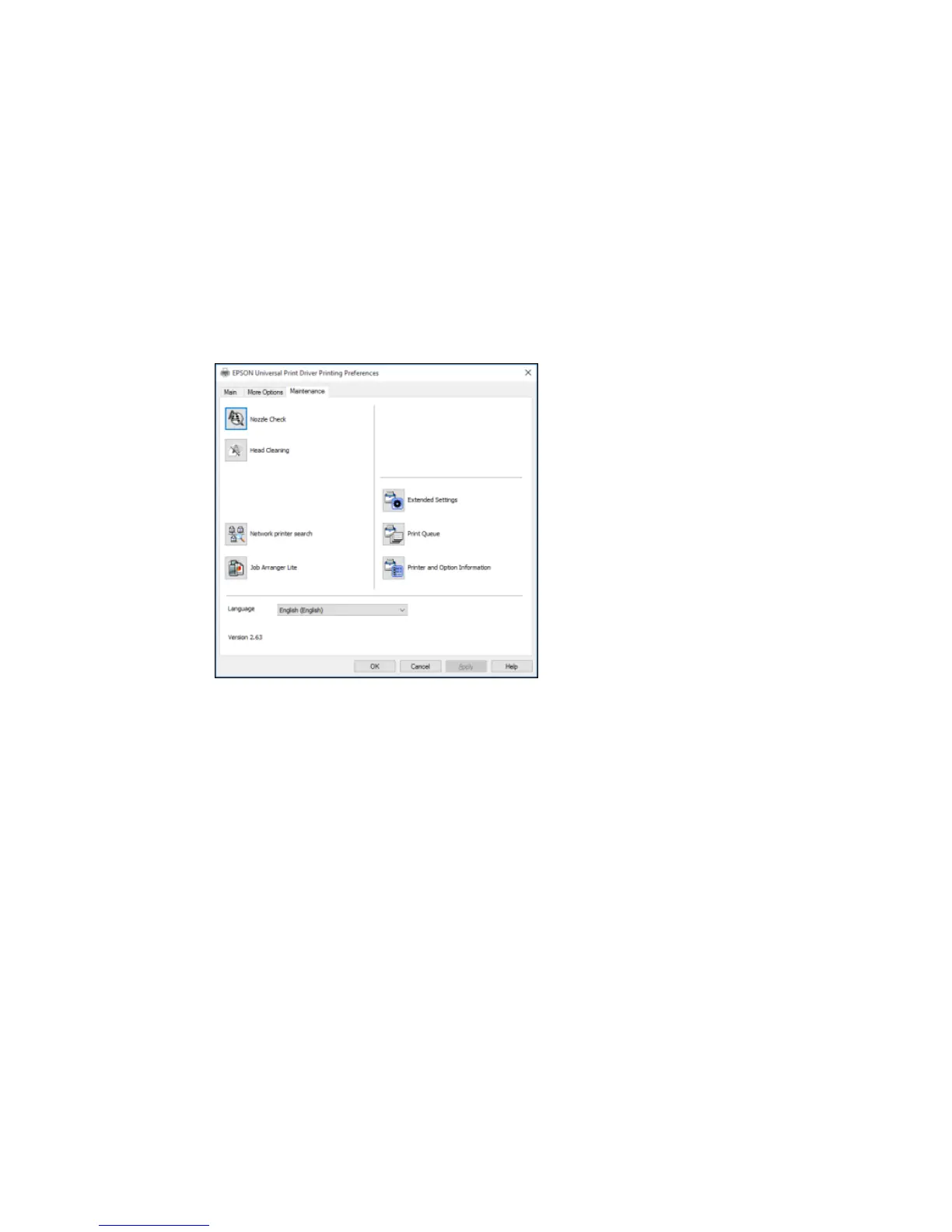Selecting Maintenance Options - Epson Universal Print Driver - Windows