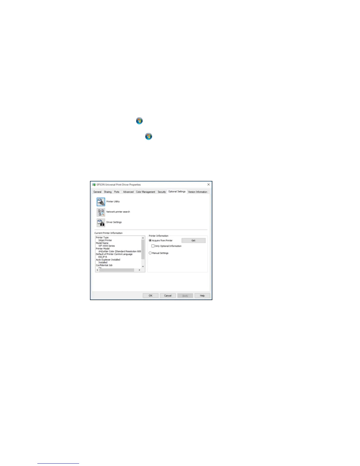 • Windows 7: Click and select Devices and Printers. Right-click EPSON Universal Print