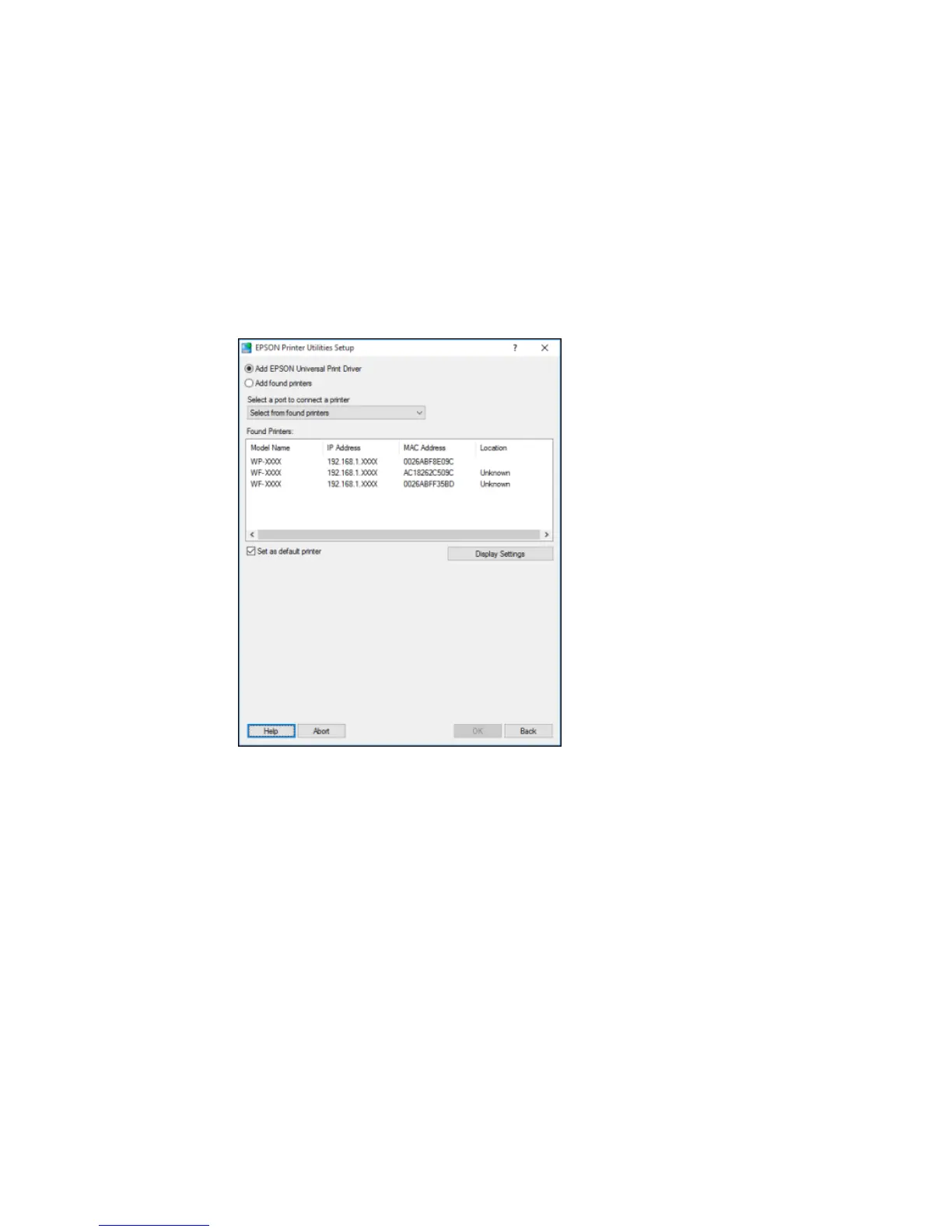 • If you are installing one product, make sure Add EPSON Universal Print Driver is selected and