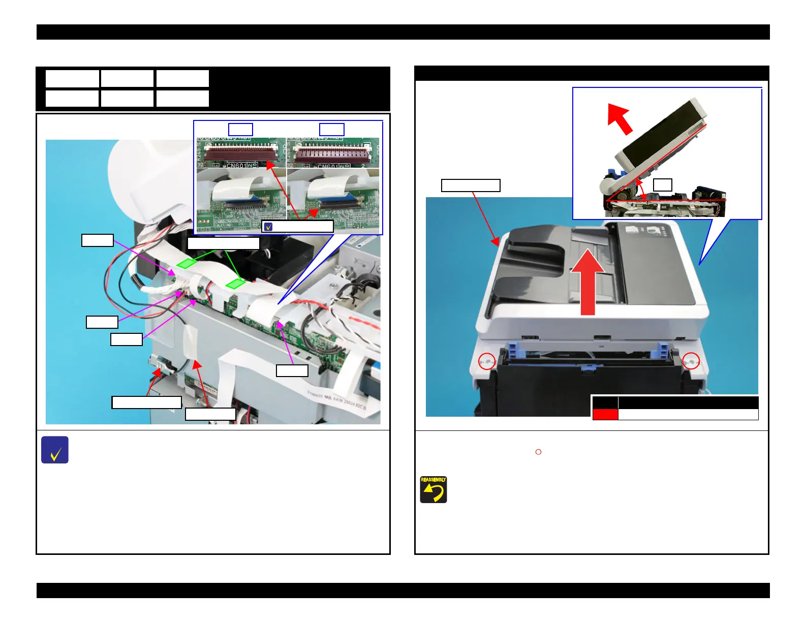 Before screwing the ADF/SCN Unit, make sure the hinges are properly attached in place.