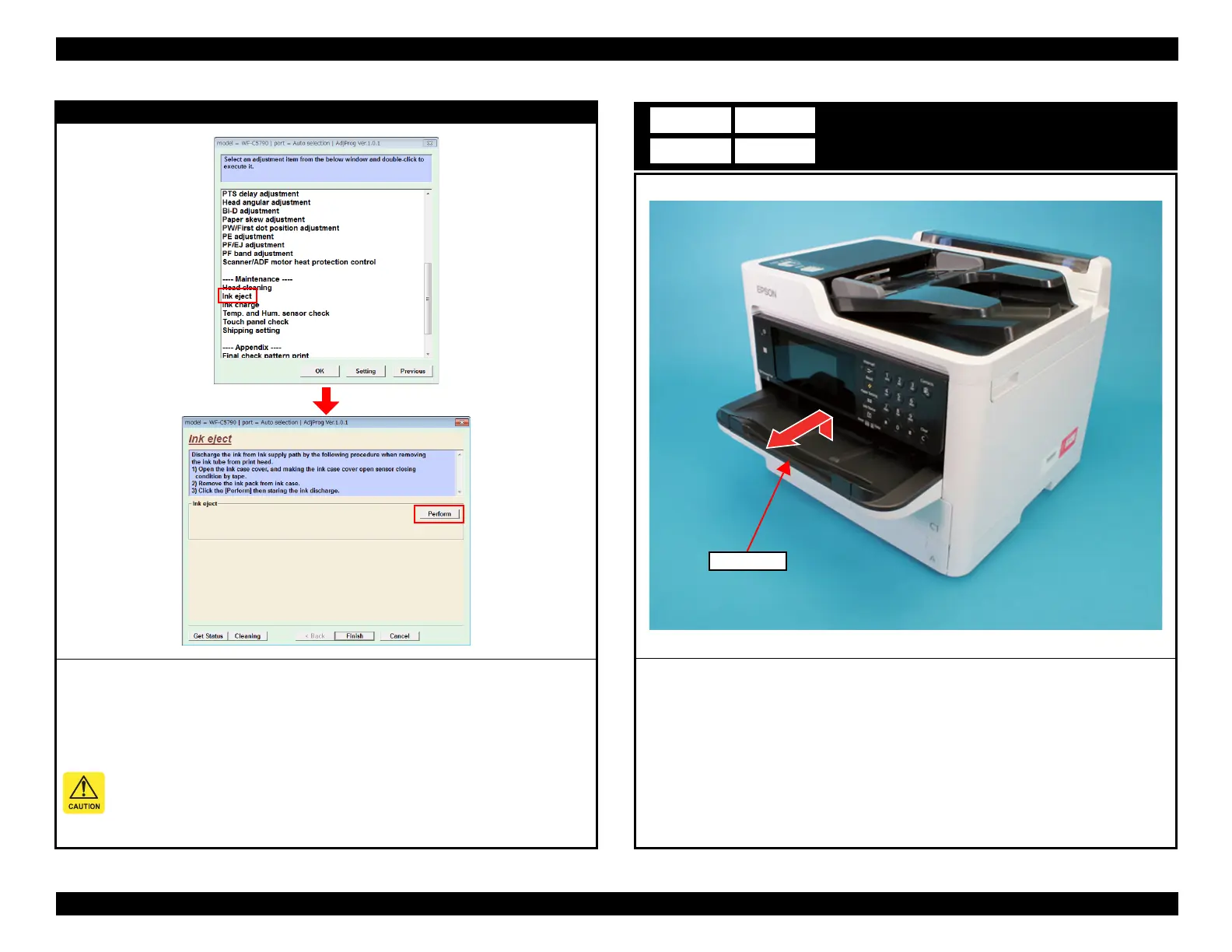 4. Execute the Ink Eject at following instruction on the adjustment program.