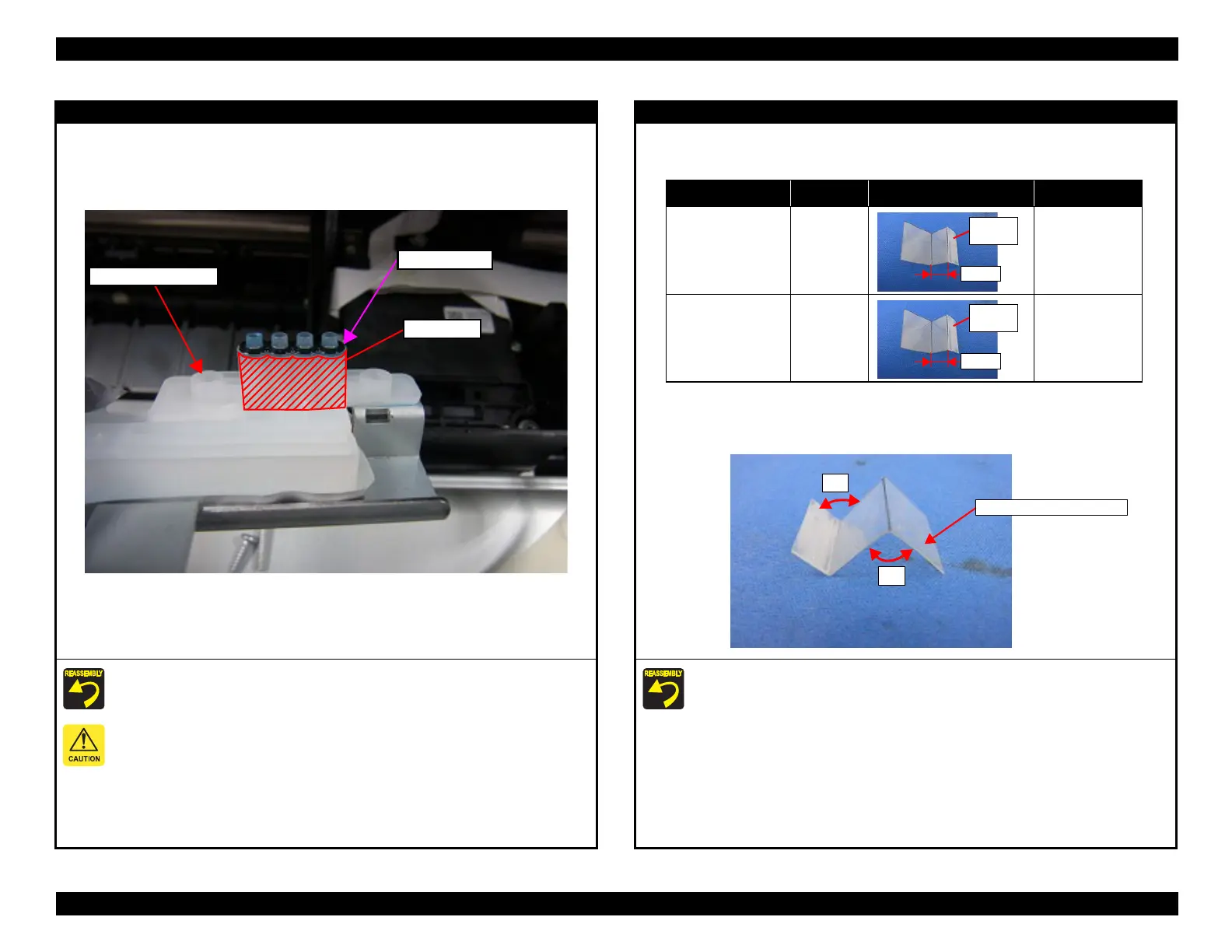 Before using the Leak Check Jig, push the ink leak measurement jig along the folds