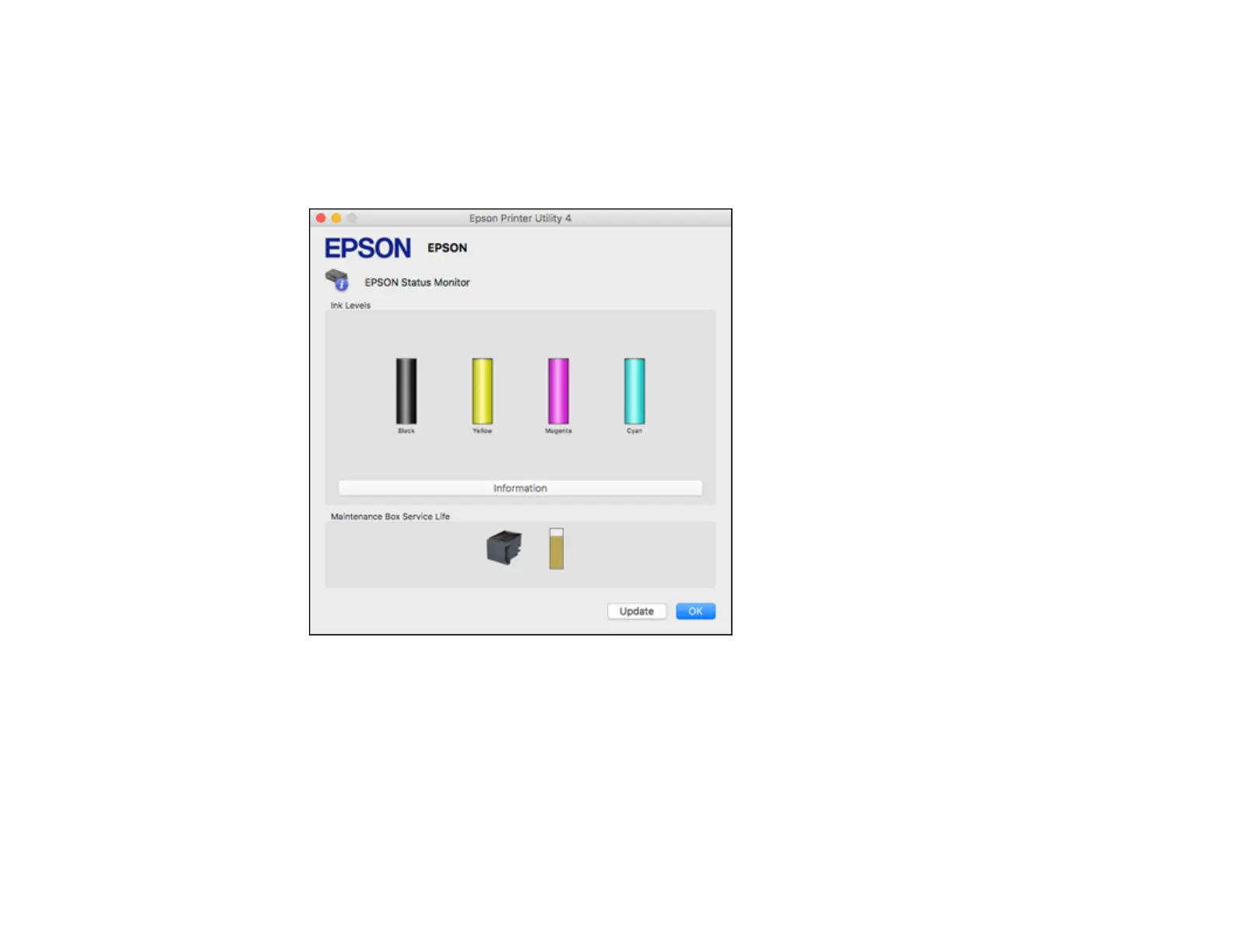 • You can update the ink and maintenance box status by clicking Update.