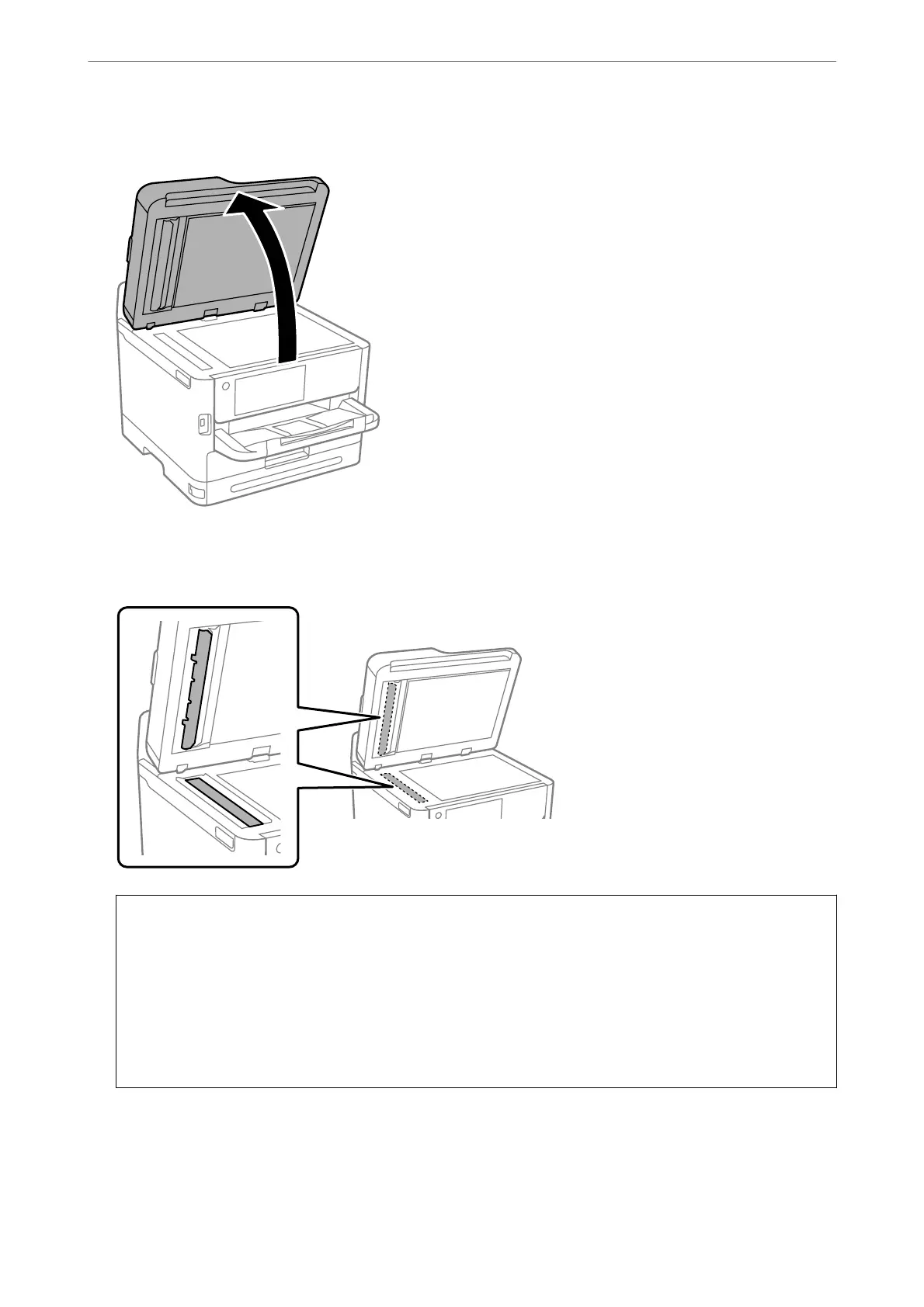 ❏ Be careful not to scratch or damage the surface of the glass. A damaged glass surface can decrease the scan