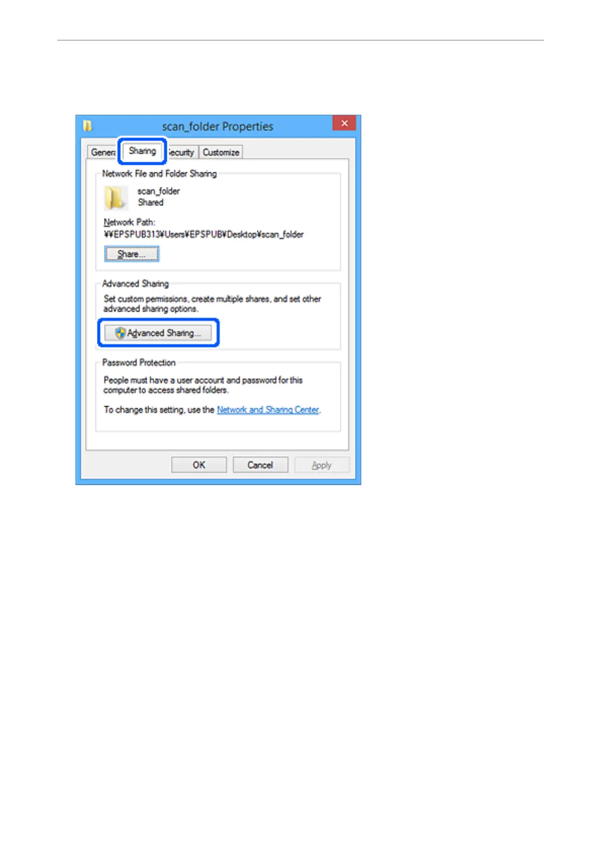 5. Click Advanced Sharing on the Sharing tab.