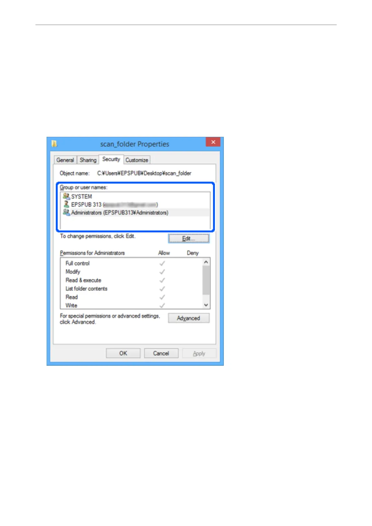 In this case, the user who logs in to this computer and the Administrator can access the shared folder.