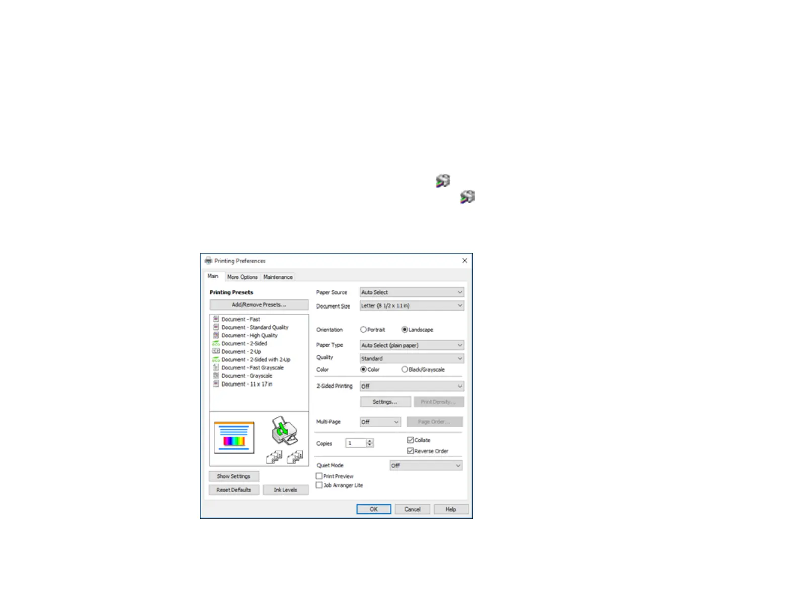 Selecting Default Print Settings - Windows