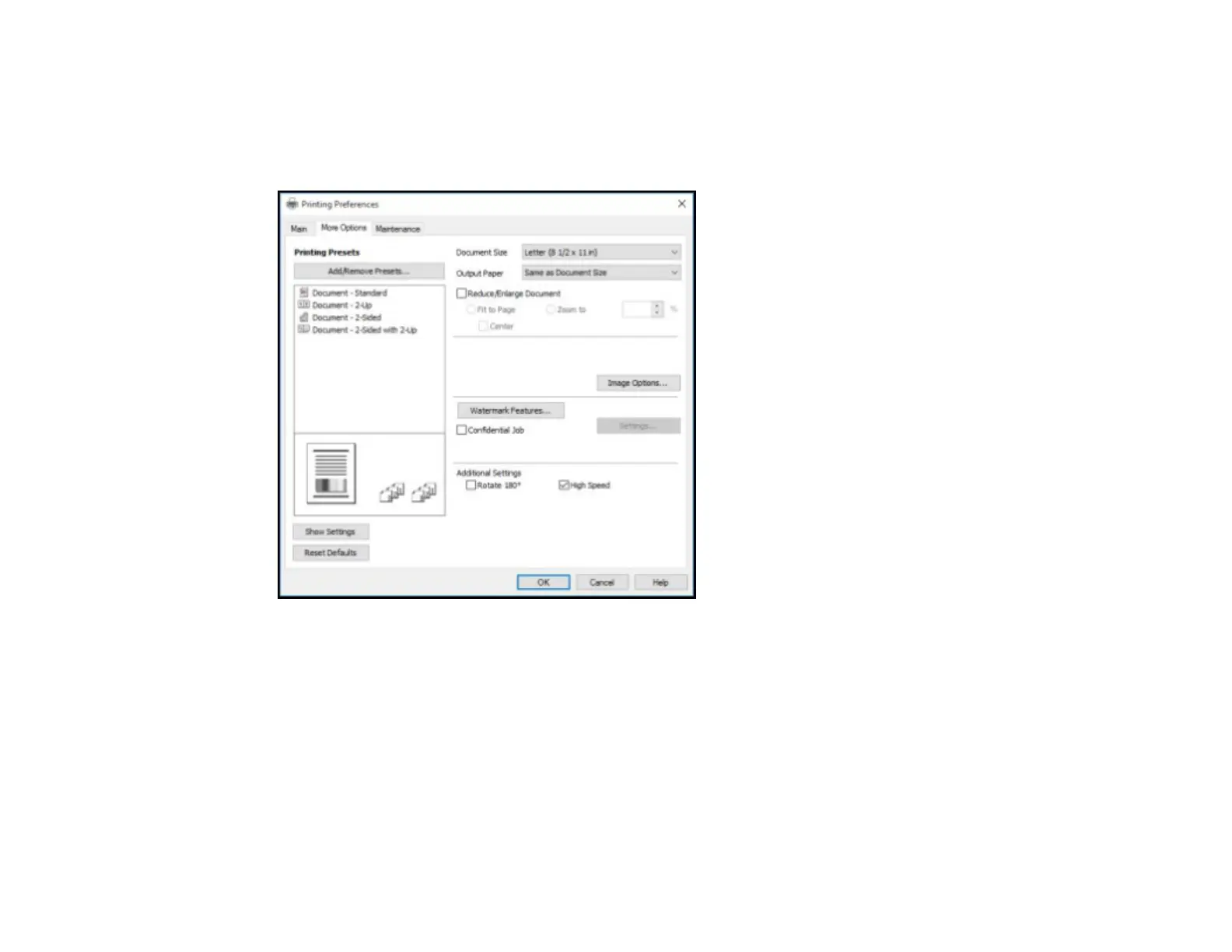 You can select a variety of additional layout and printing options for your document or photo on the More