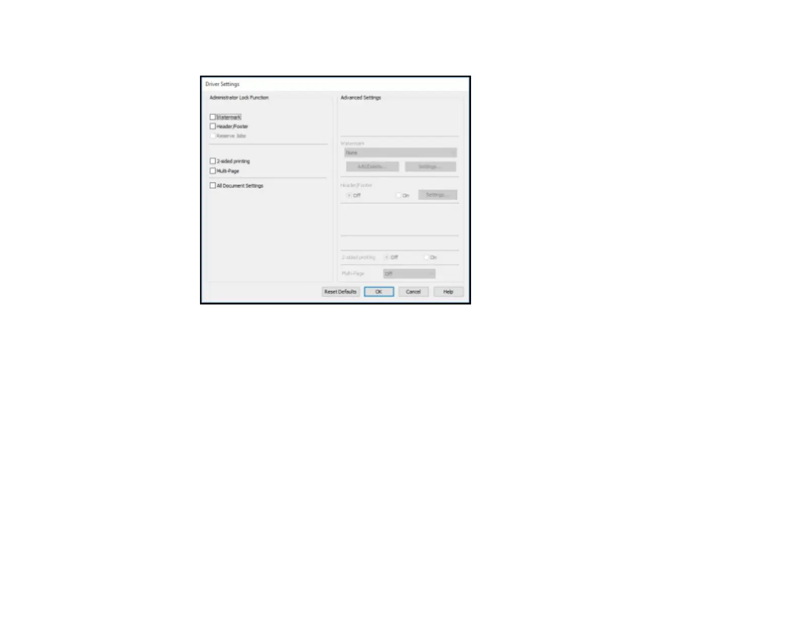 4. Select the checkbox for the settings you want to lock. To lock all print settings, select All Document