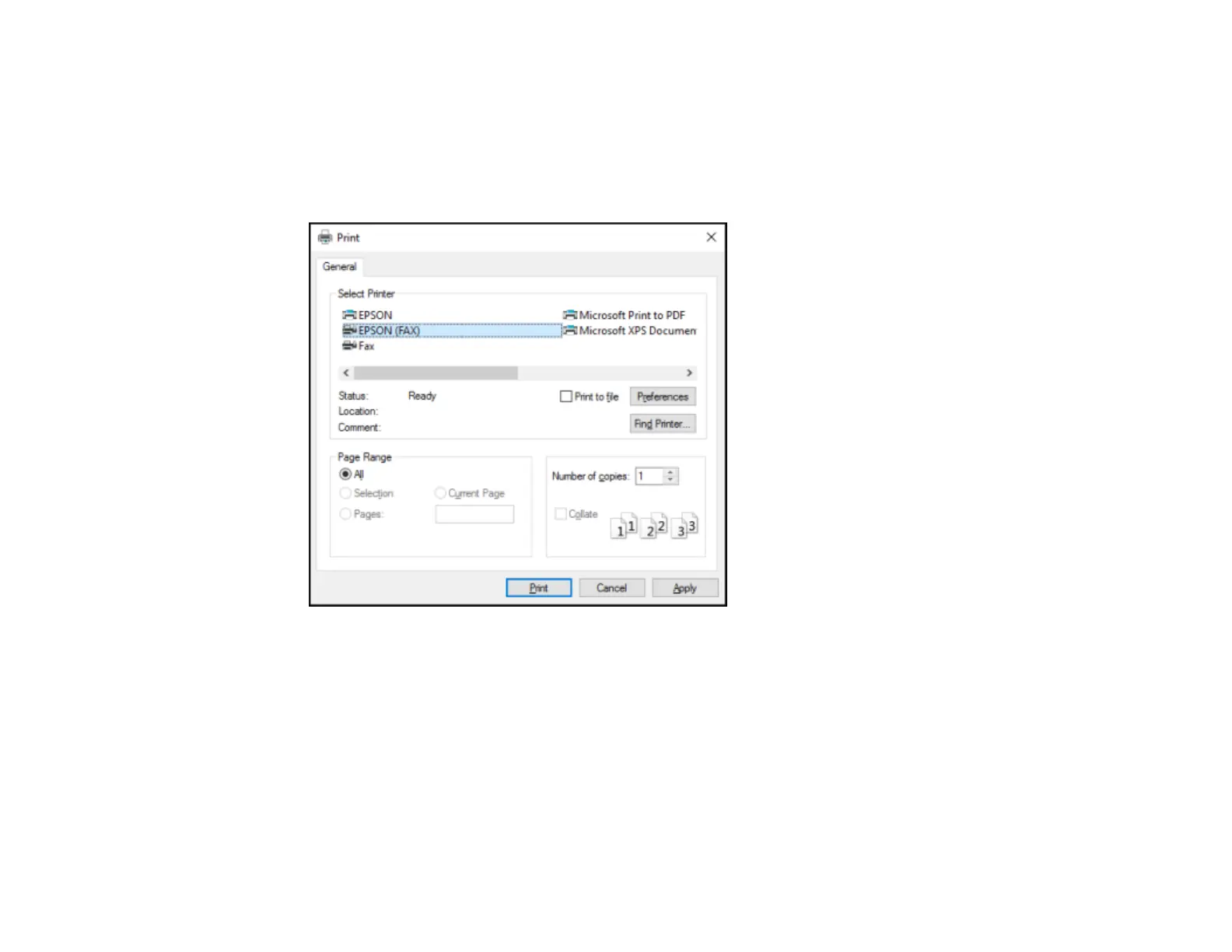 4. Select the Page Range as necessary. (Leave the Number of copies set to 1.)