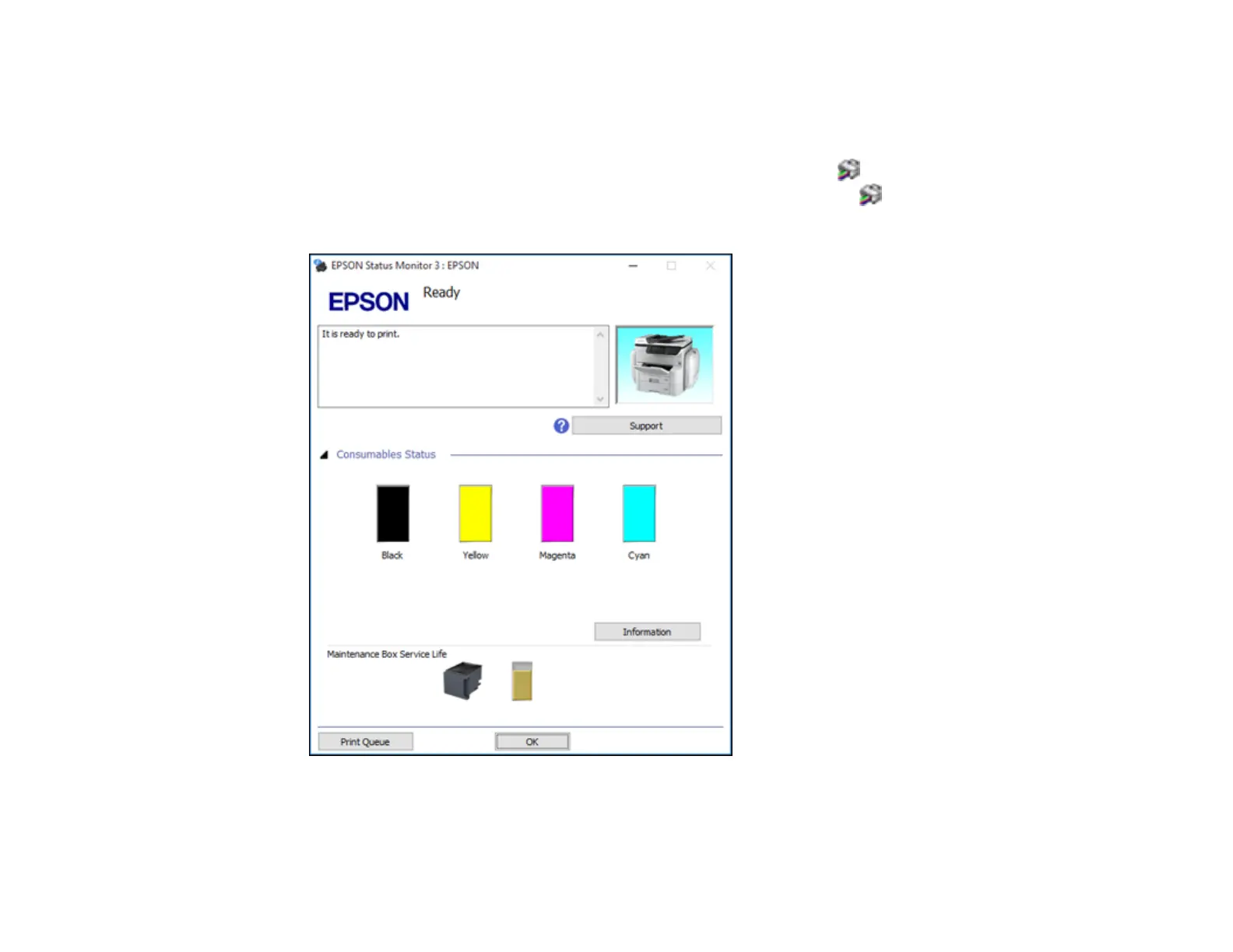 A low ink reminder appears if you try to print when ink is low, and you can check your ink or maintenance