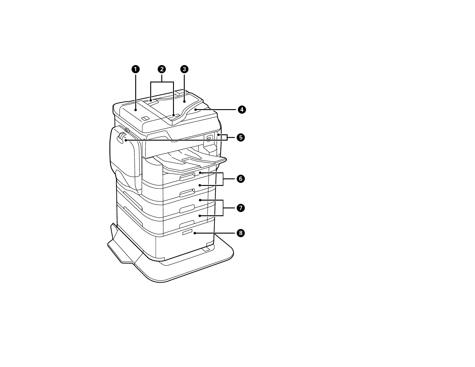 Certain parts are labeled with a letter and number code. If you encounter any paper jams or errors, you