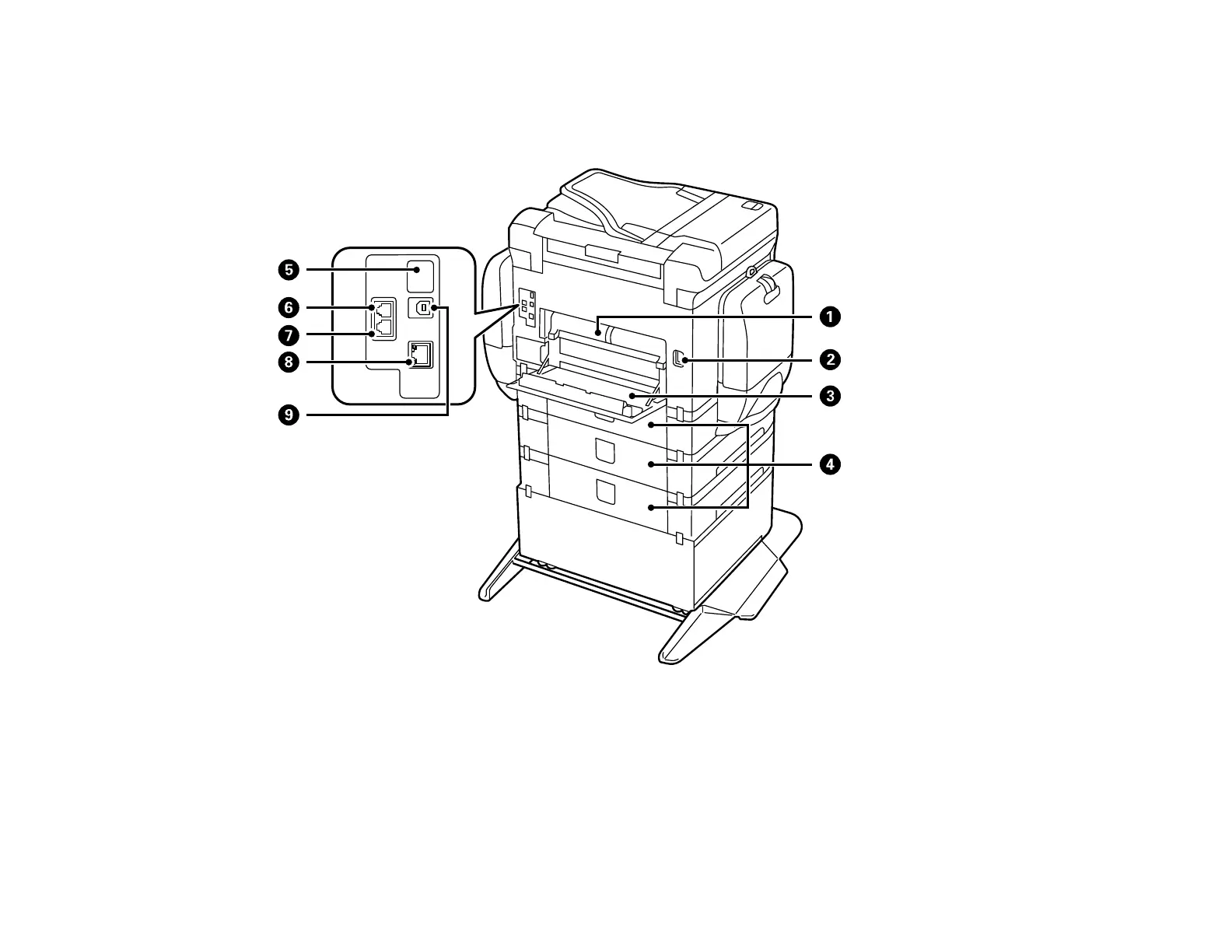 Certain parts are labeled with a letter and number code. If you encounter any paper jams or errors, use