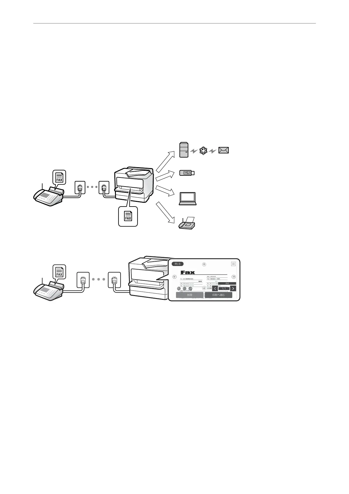 for received faxes to the inbox, a computer, an external memory, emails, folders, or other faxes. If you save in the