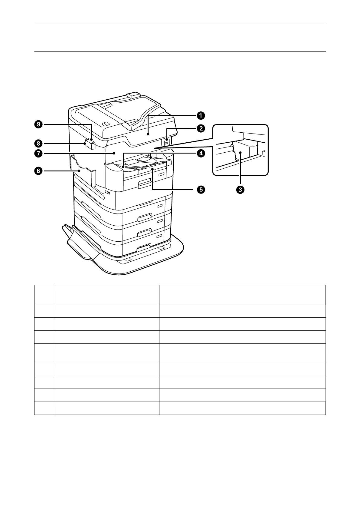 Output tray Holds the ejected paper. Slide out the tray by hand and push it back