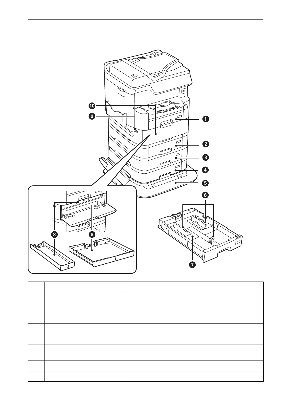 Paper cassette 2 (C2) Loads paper. Optional paper casette unit. Use when this option is