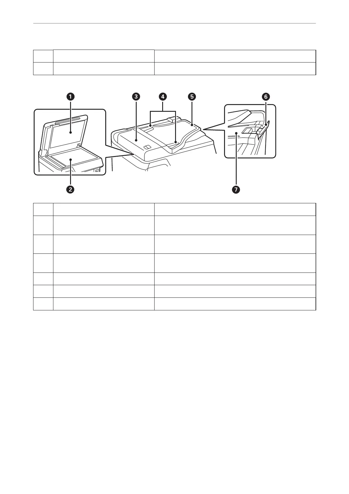 Stopper Prevents the ejected originals from falling from the ADF output tray.