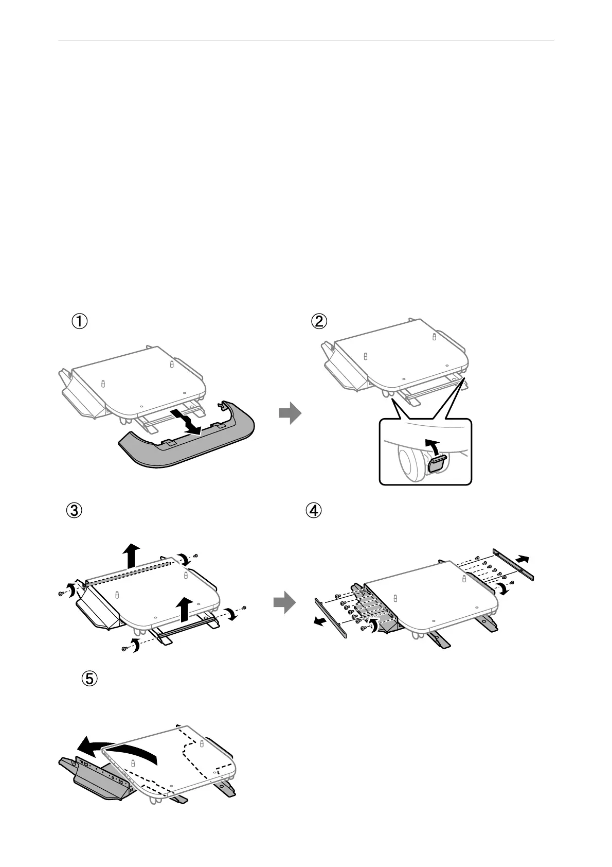 When uninstalling the printer stand, turn o the printer, unplug the power cord, disconnect any cables, and then