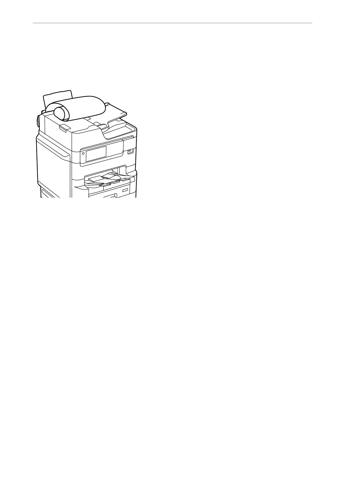 Load long paper in the paper tray by allowing the leading edge of the paper to roll over. Select