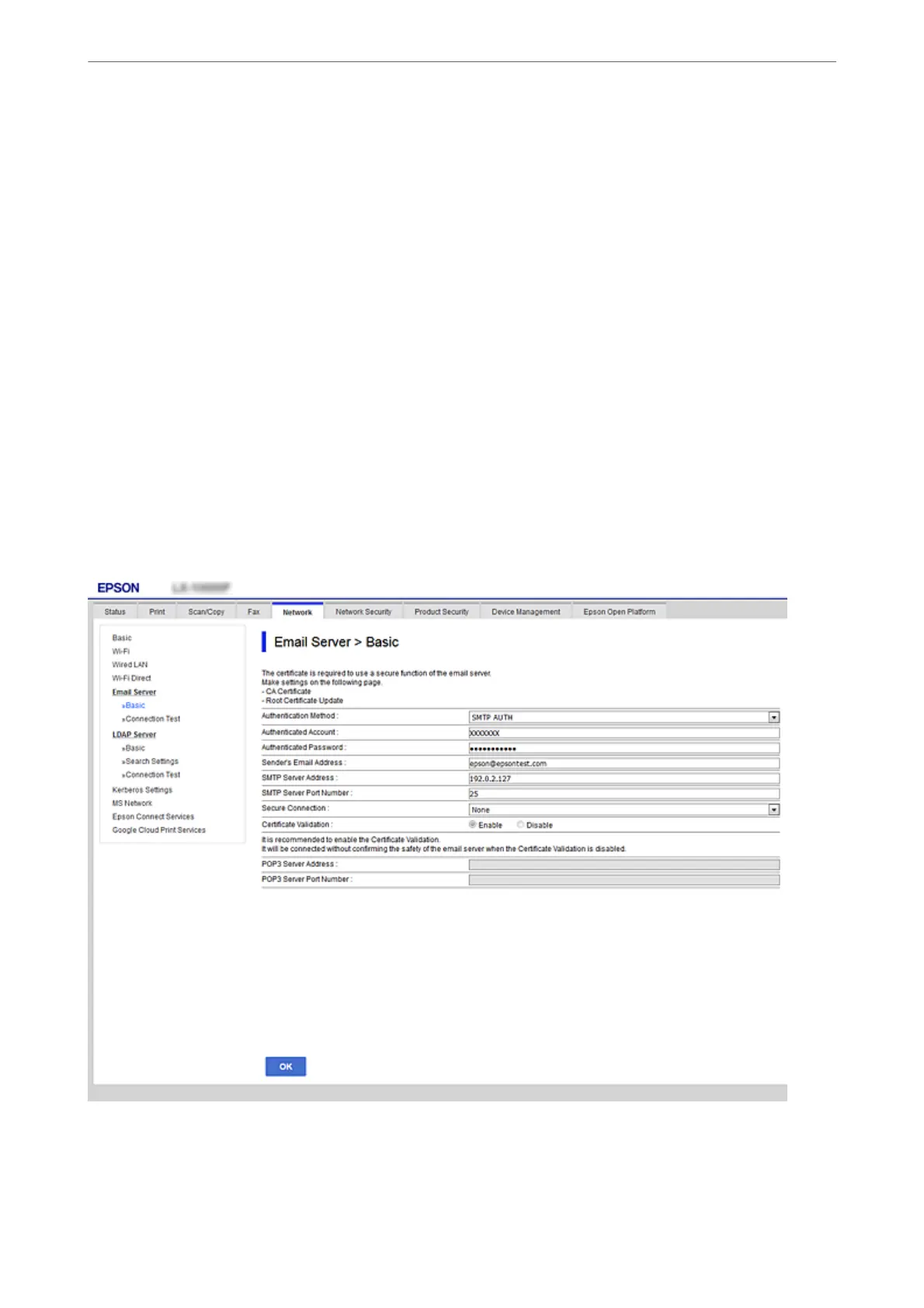 ❏ When you use the mail server on the Internet, conrm the setting information from the provider or website.