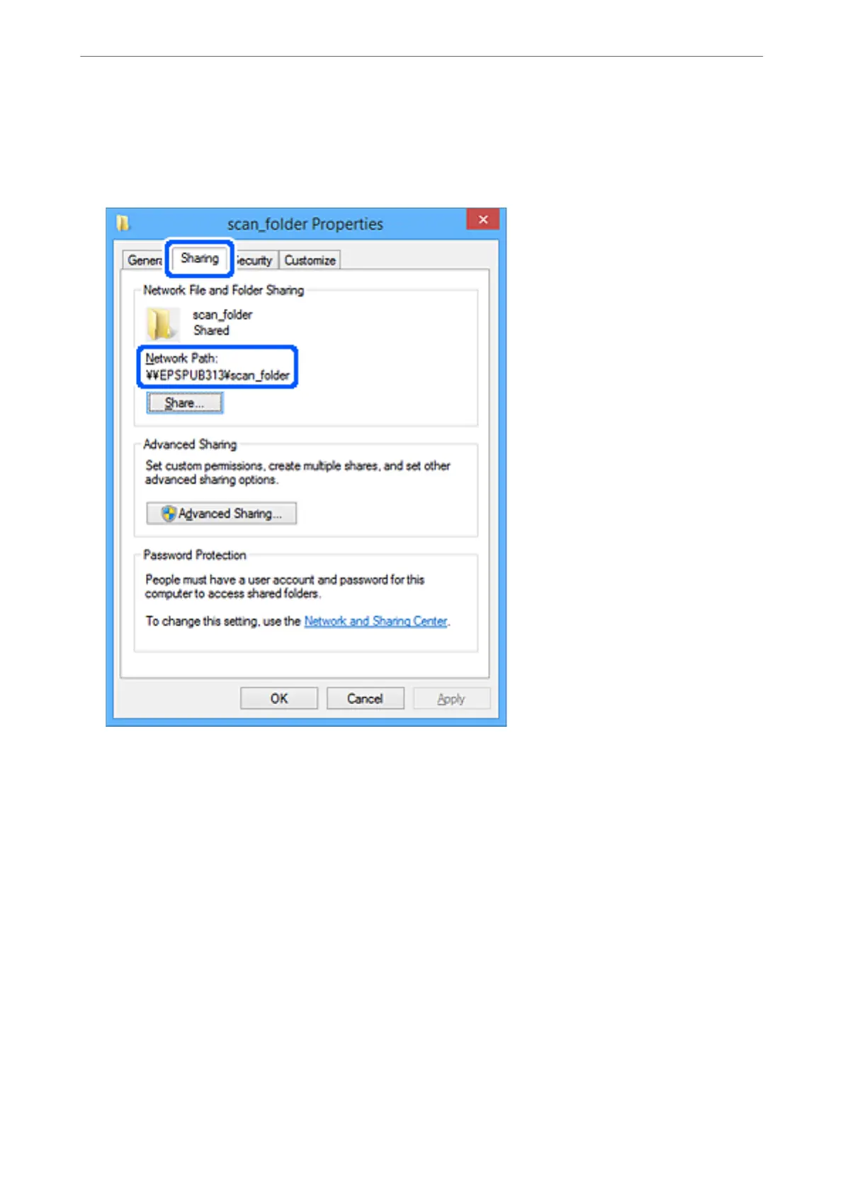 e network path of the shared folder is displayed. is is used when registering to the printer's contact. Please