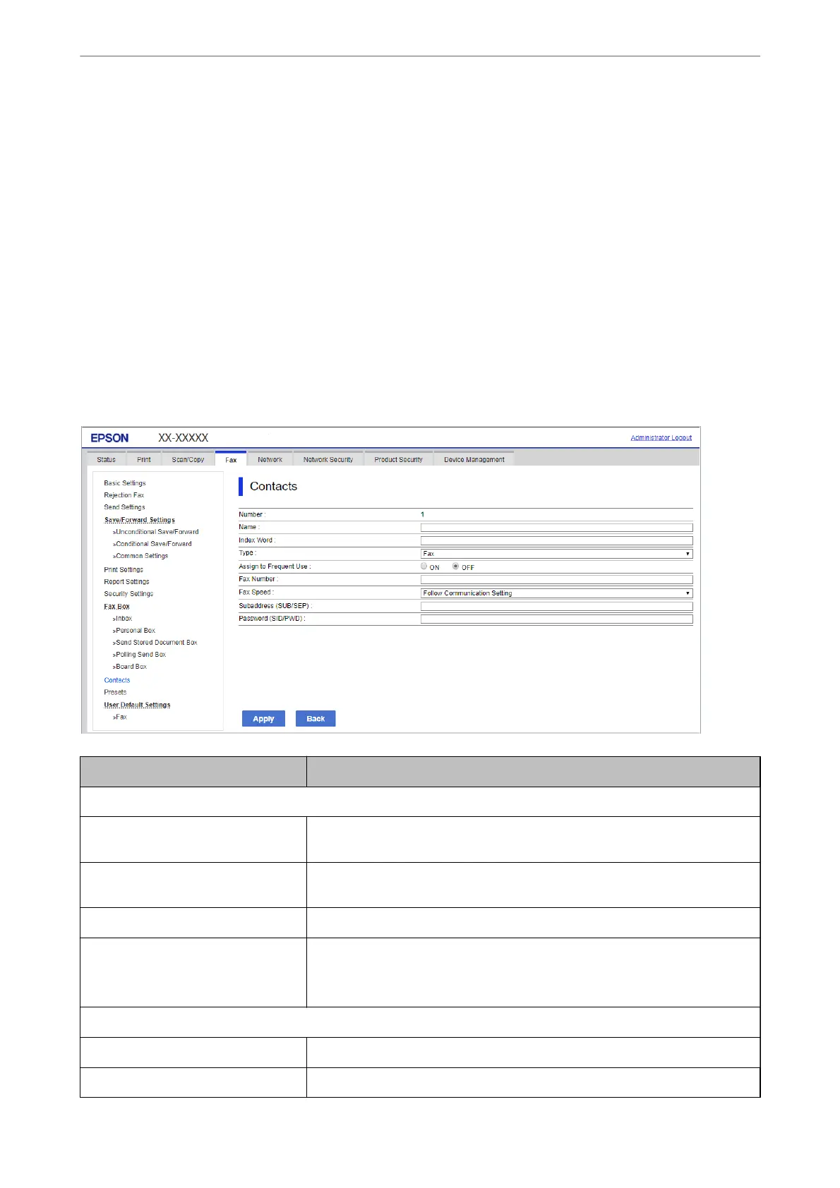 Fax Speed Select a communication speed for a destination.