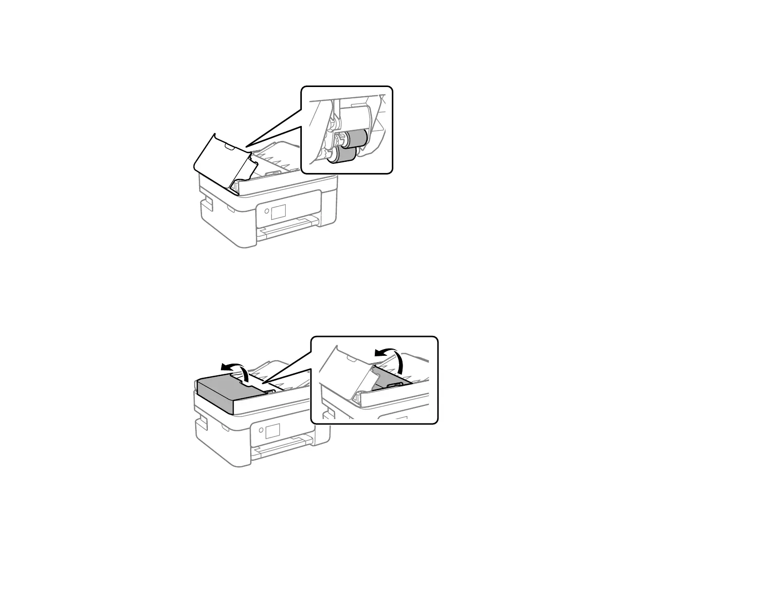 Caution: Do not use a dry cloth to clean the rollers; you may damage them. Use the ADF after the