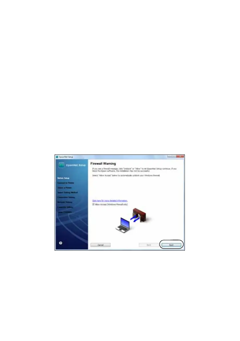 If you see a firewall alert message, click Unblock or Allow to let EpsonNet Setup