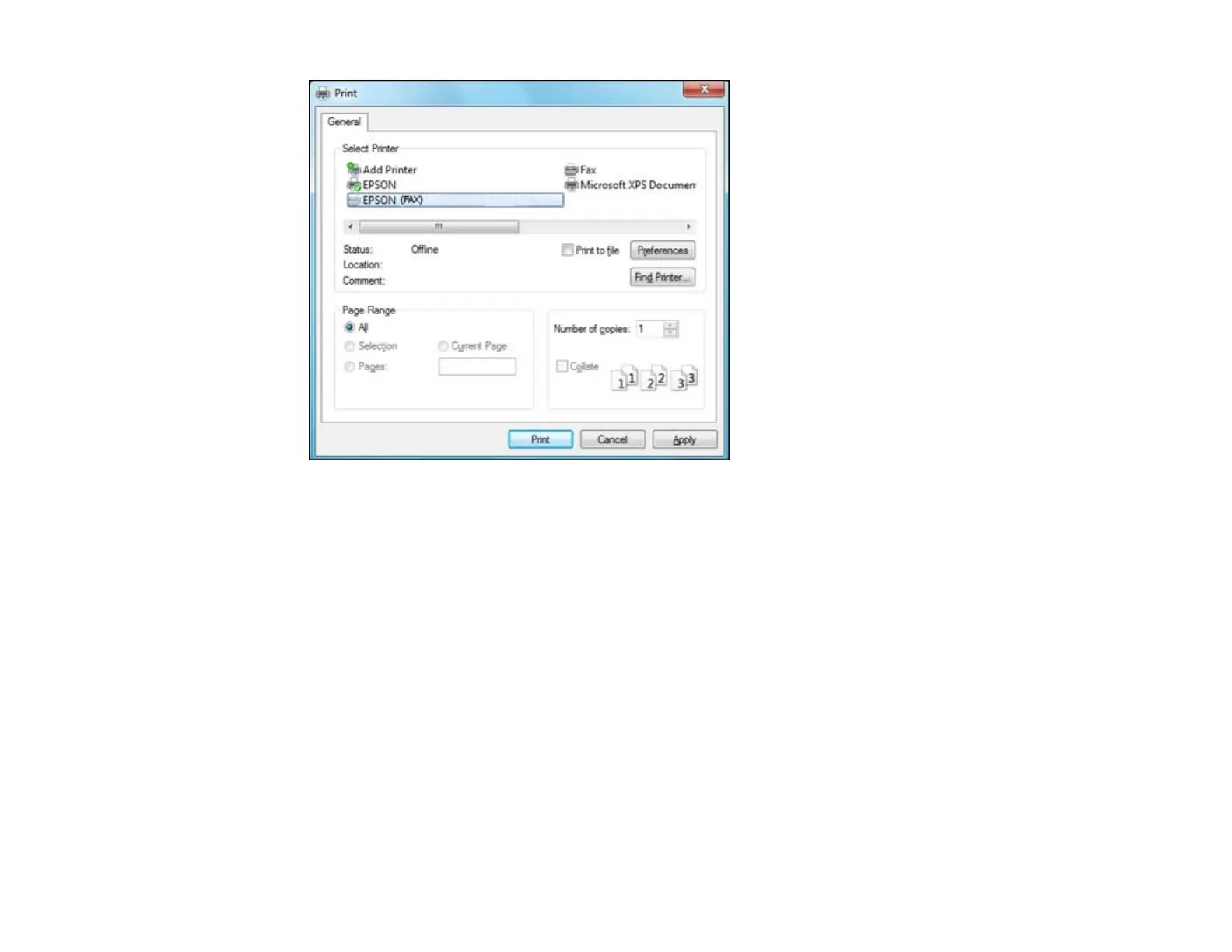 2. Select your product with the FAX option as the printer.