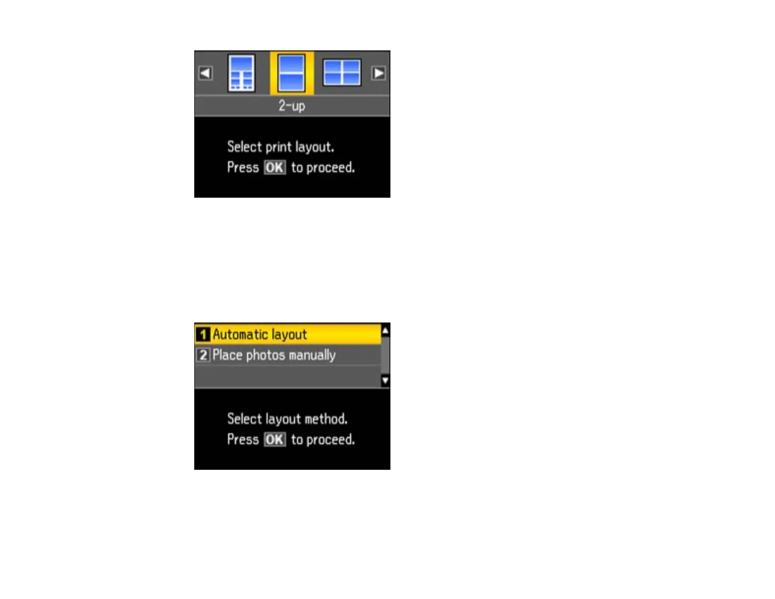 3. Press the arrow buttons to select one of the layout options and press the OK button.
