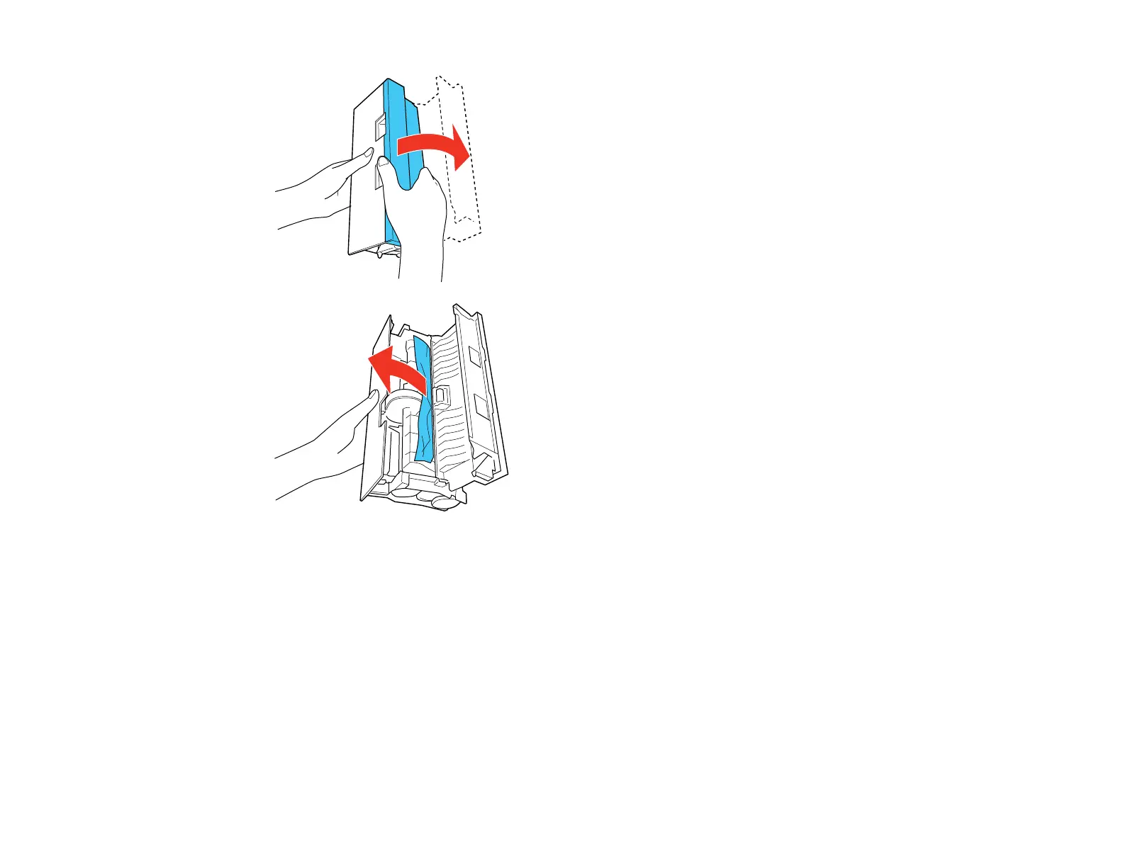 7. Remove any paper jammed in the rear of your product. Avoid touching the paper feed rollers.