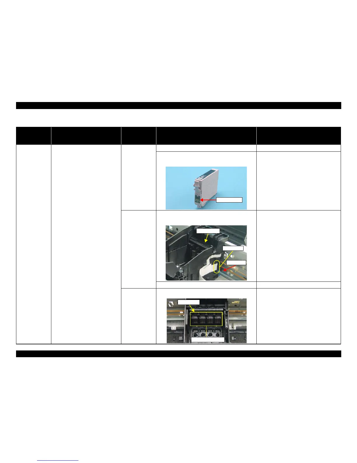 Table 3-7. Check point for Ink end / No ink cartridge / Incorrect ink cartridge error according to each phenomenon
