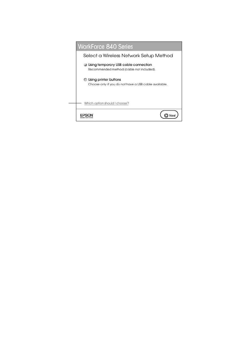 8. When you see this screen, select a wireless network setup method, then click