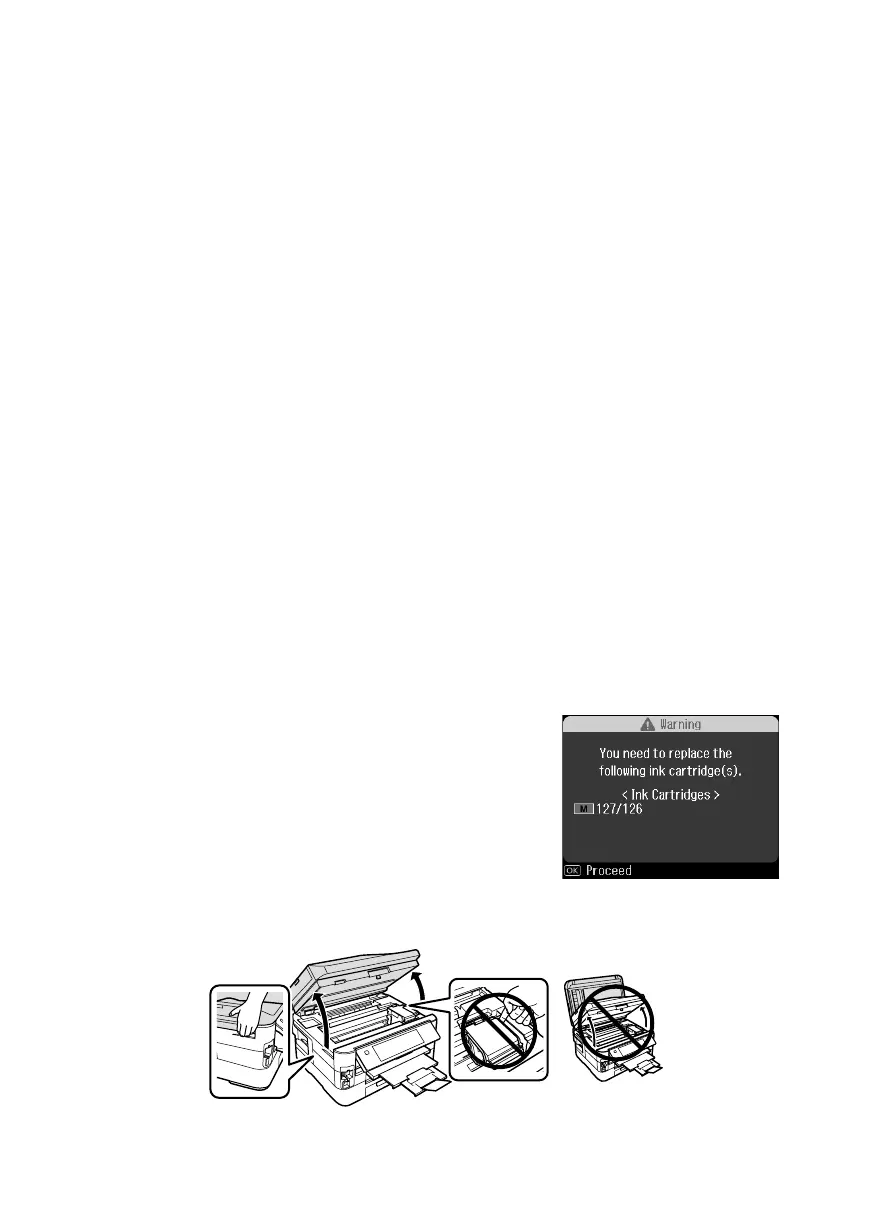 Note: If you remove a low or expended ink cartridge, you cannot reinstall and use the
