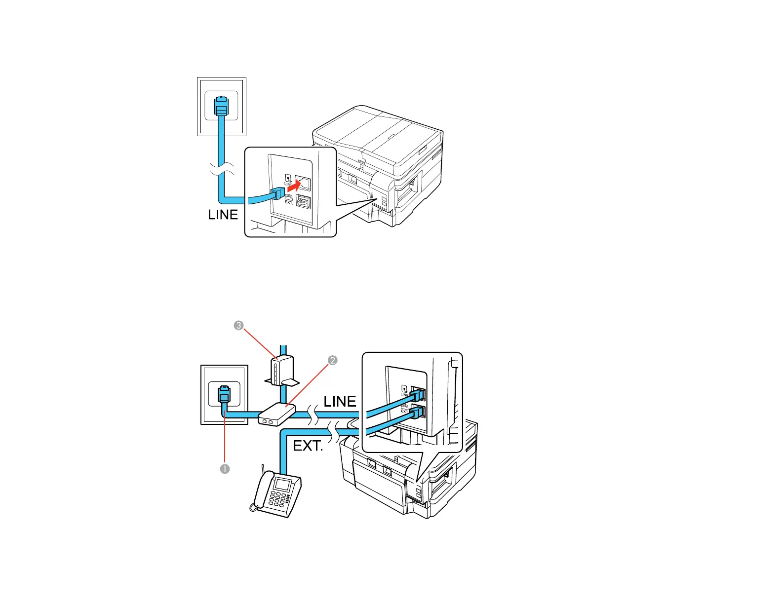 1. Connect the phone cable to your telephone wall jack and to the LINE port on your product.