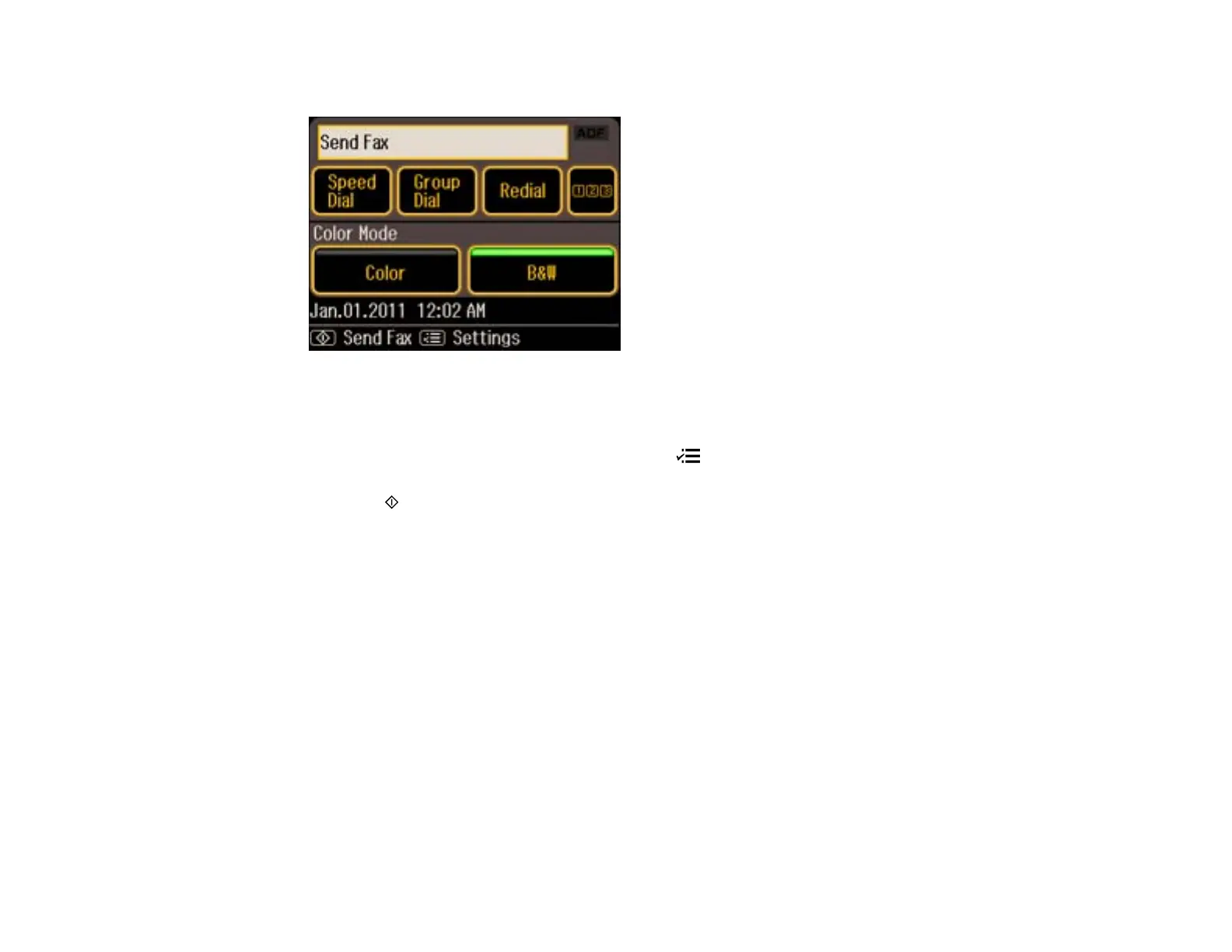 6. If you need to change any fax settings, press the menu button, select Fax Send Settings, and