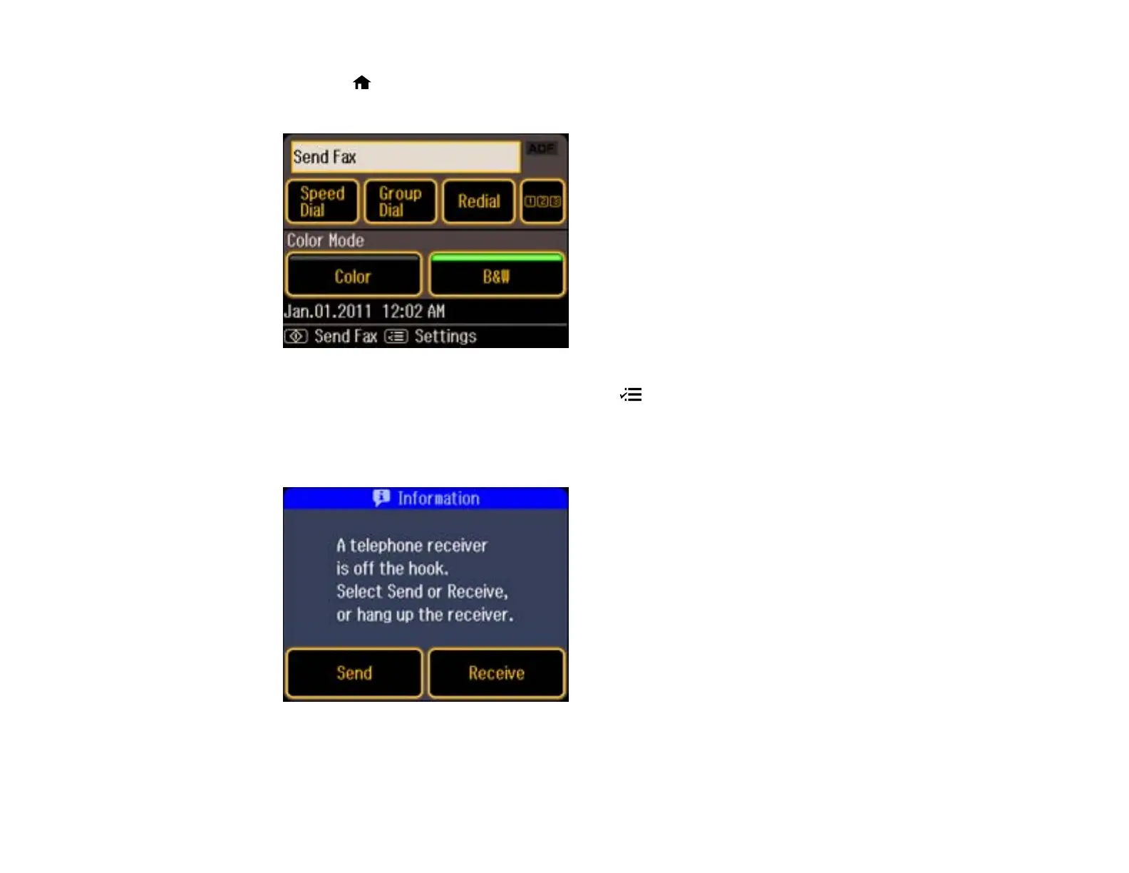 4. If you need to change any fax settings, press the menu button, select Fax Send Settings, and