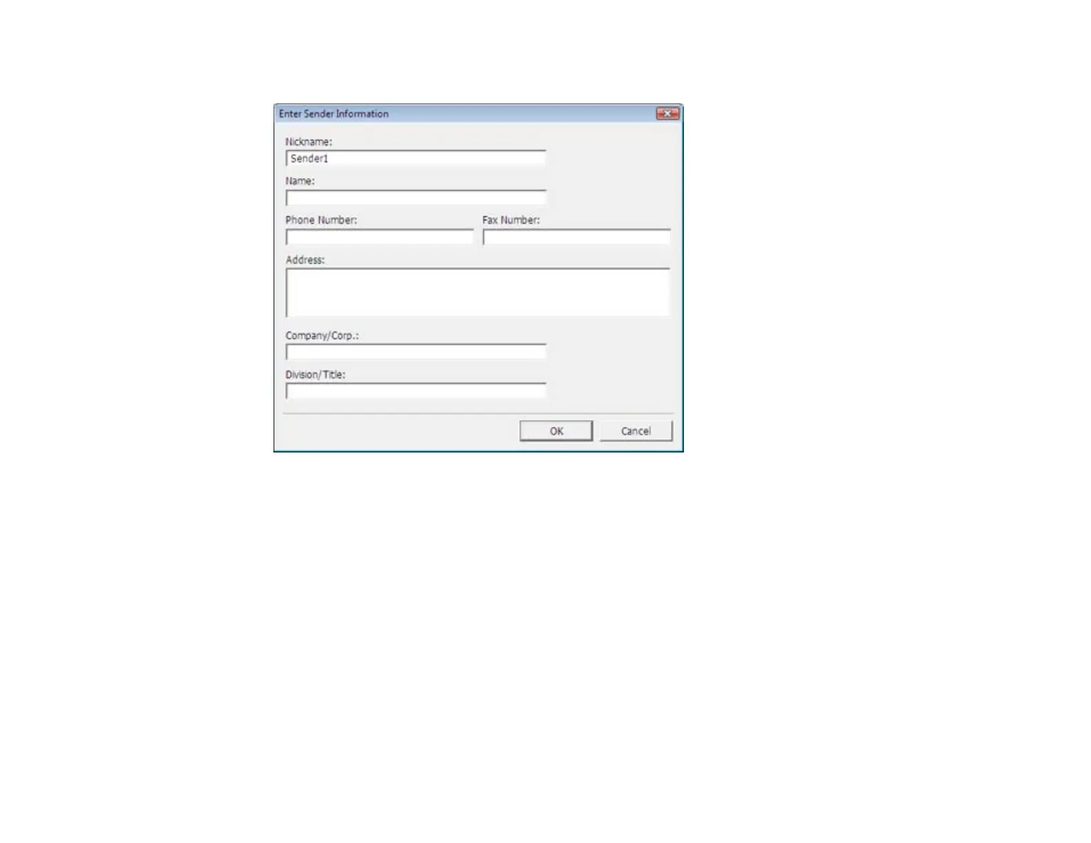 6. Enter your sender information so that recipients can identify the origin of the fax. Then click OK to
