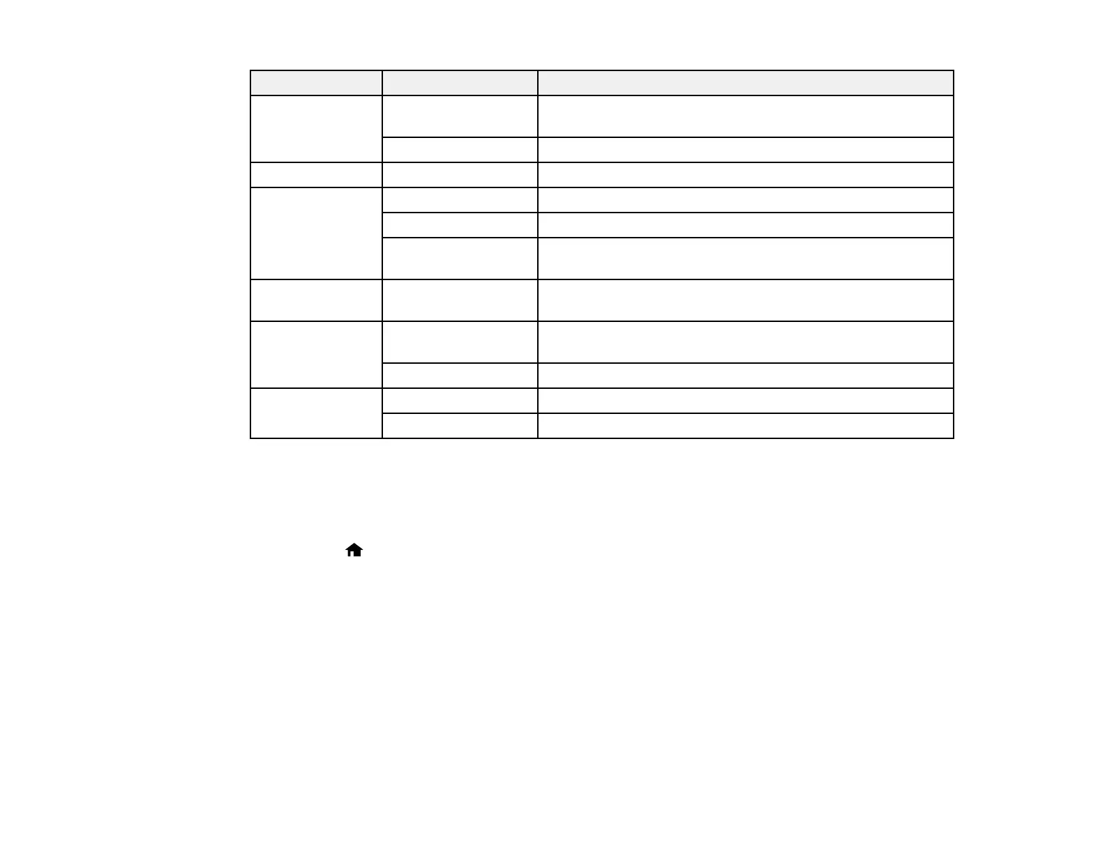 Print settings Available options Description