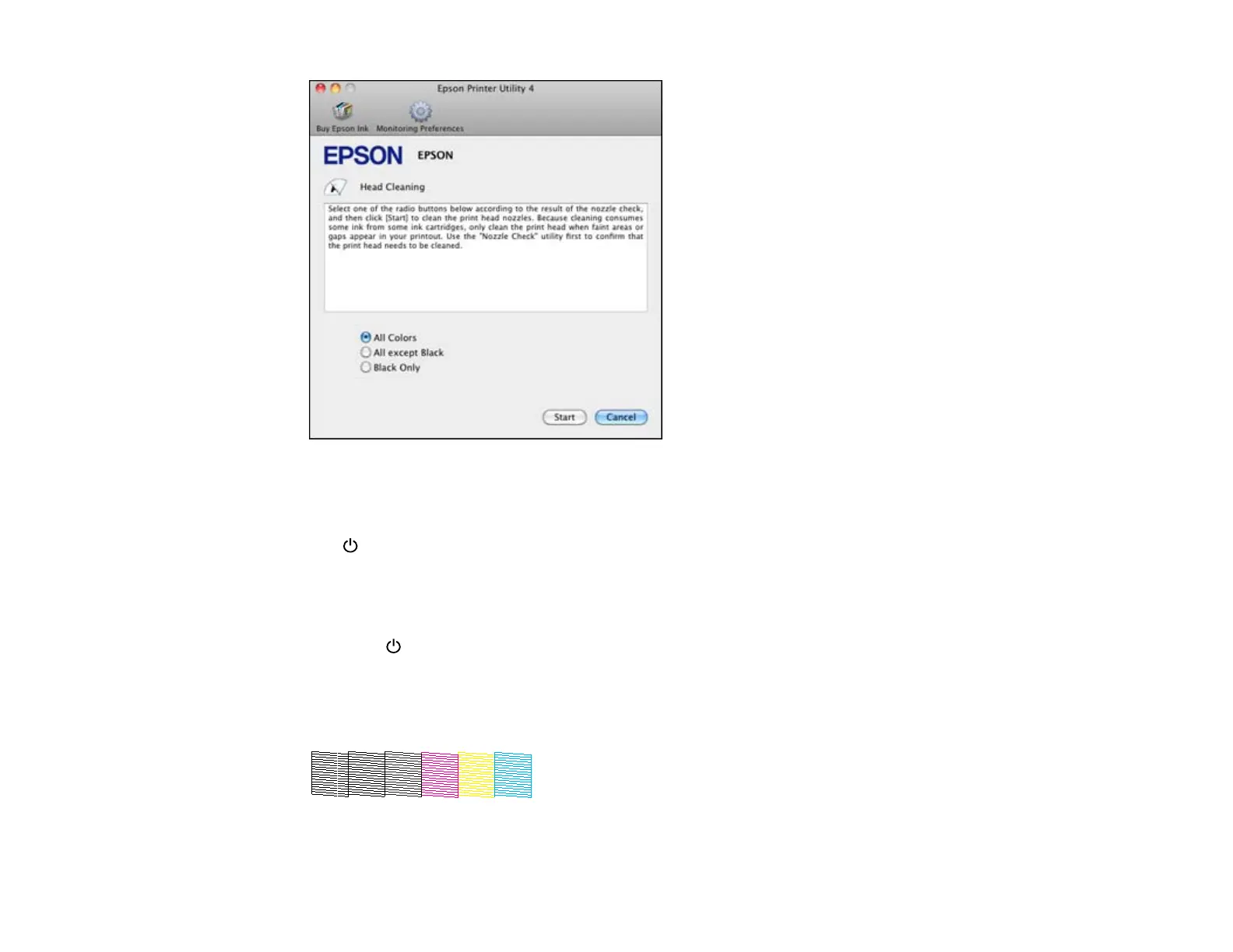 4. Select the cleaning cycle you want to run, based on the nozzle check pattern.
