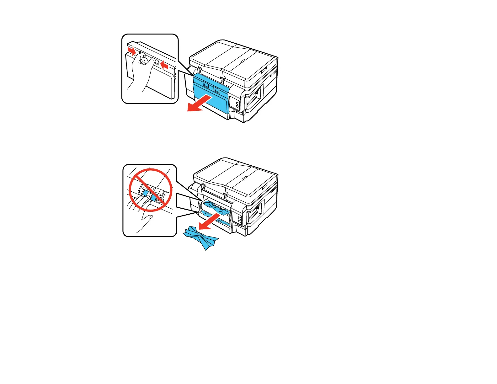 4. If paper is jammed in the duplexer, remove the paper as shown.