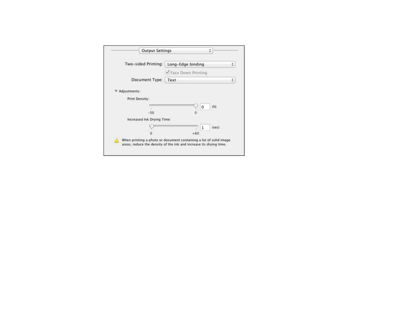 You can select any of the available options in the Two-sided Printing Settings or Output Settings
