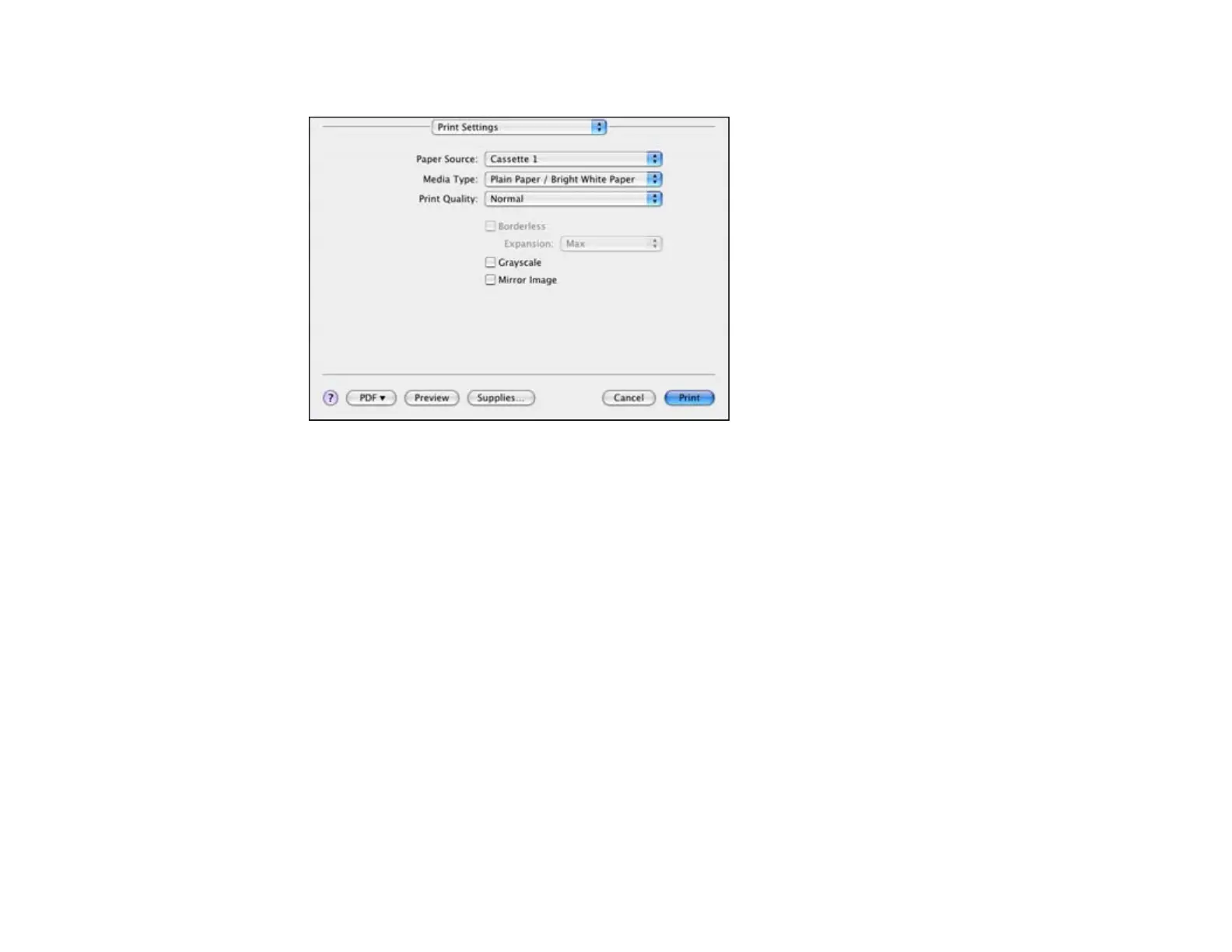 Parent topic: Printing with Mac OS X 10.4